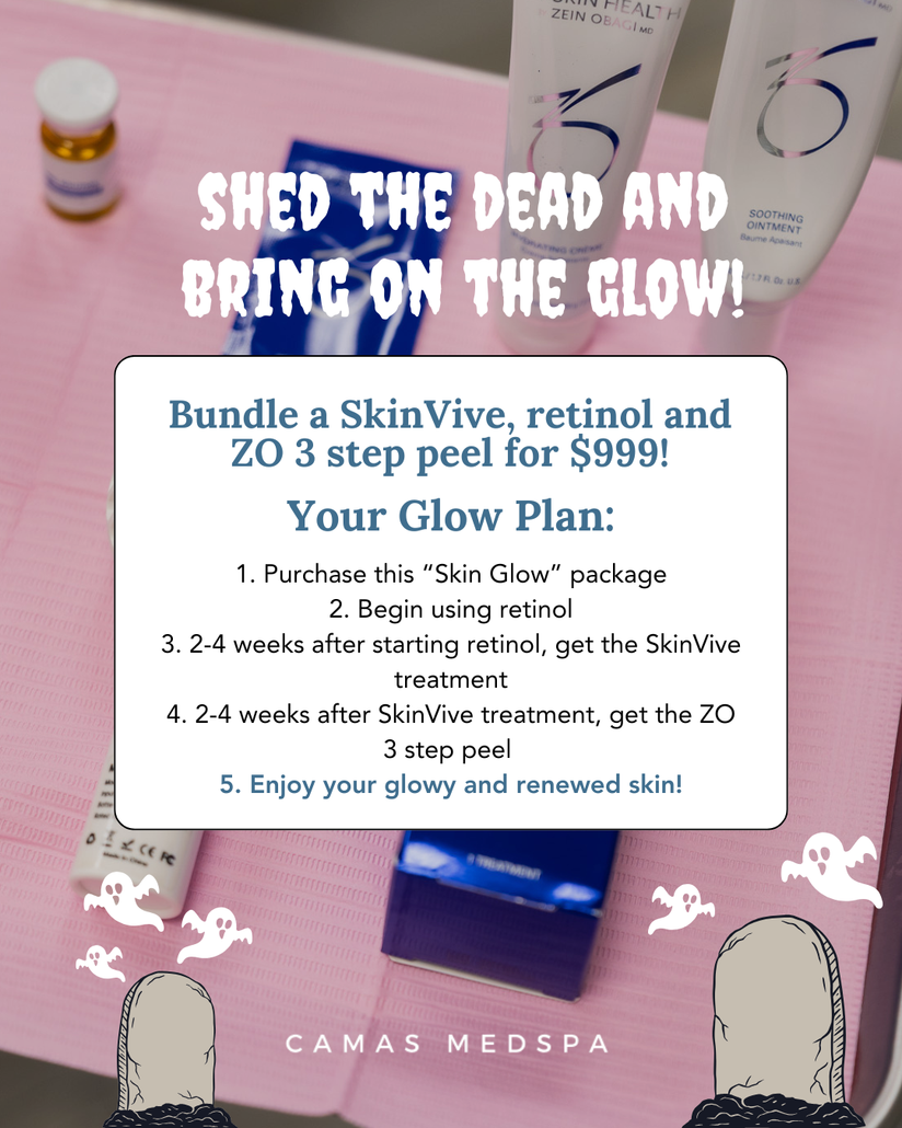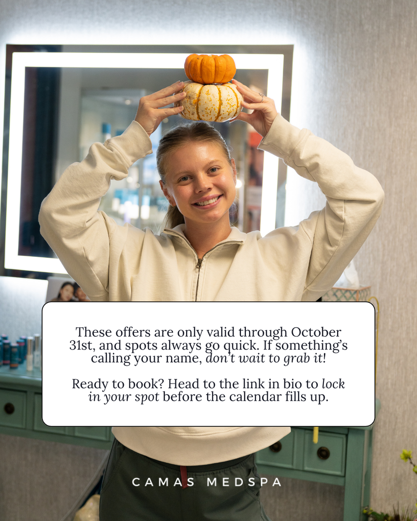 It’s spooky season at Camas Medspa! 👻 but your skin doesn’t have to be scary. 😱 Smooth, glow, and snatch your way through fall with treatments that banish dullness and bring the radiance back! Injectables, laser, facials, we have it all! 🫶 #camaswa #vancouverwa #washingtonmedspaButton