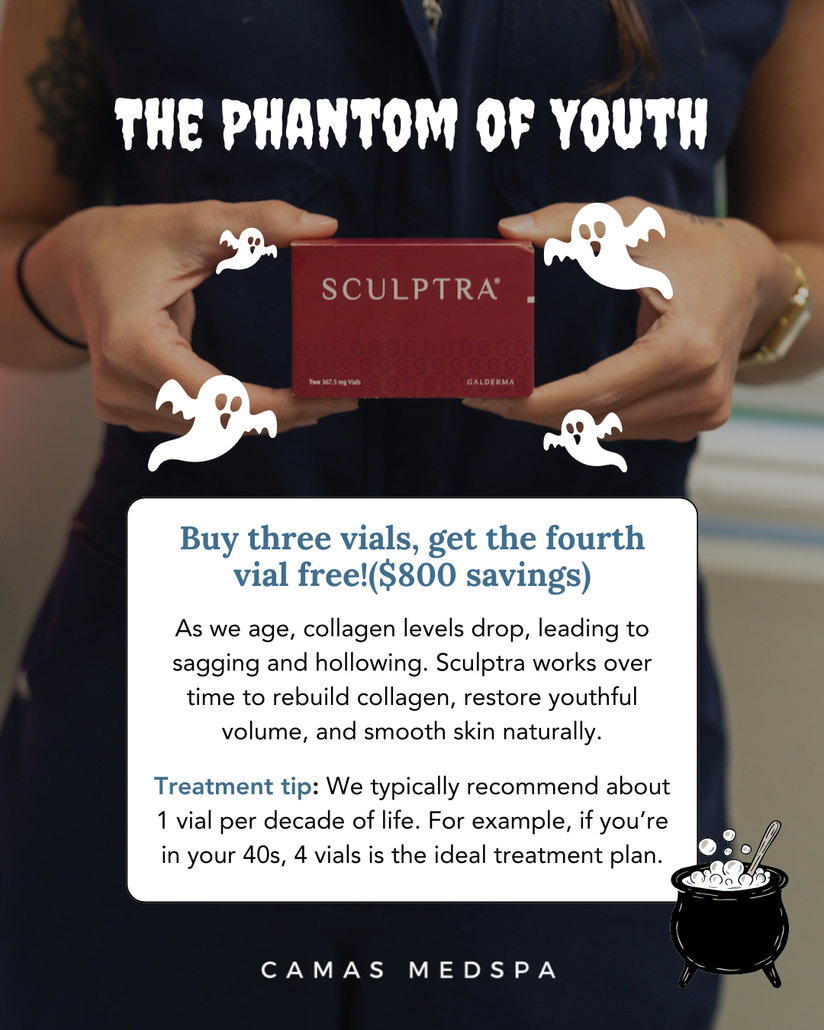 October specials you don’t want to ghost…🎃👻 💋 Scream Worthy Smooth & Plump – Buy 1 syringe of any lip filler & get $50 off Botox (30 unit min.) 🪦✨ Shed the Dead & Bring on the Glow – Bundle a SkinVive, retinol + ZO 3-Step Peel for $999! This combo works on multiple levels: • ZO 3-Step Peel exfoliates away sun damage, pigmentation & rough texture. • Retinol stimulates cell turnover & collagen renewal. • SkinVive hydrates from within for long-lasting glow + smoother skin. The perfect trio to clear out summer damage and refresh your skin for fall. 🍂 👻 The Phantom of Youth – Buy 3 Sculptra, get the fourth vial free! ($800 savings!) 👻 📍 Camas Medspa | Vancouver, WA 📲 Call/text/DM (360) 335-4951 to book your glow up! #vancouverwashington #camaswa #vancouverwa #chemicalpeels #skinvive #sculptraButton